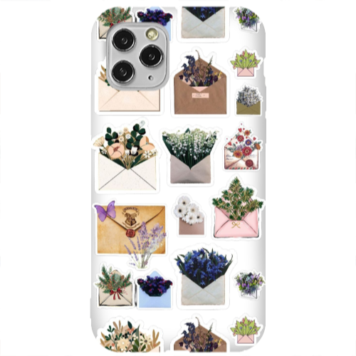 Apple iPhone 11 Pro Max Mektup Çiçek Beyaz Renkli Silikon Telefon Kılıfı