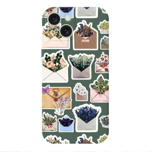 Apple iPhone 15 Plus Mektup Çiçek Koyu Yeşil Renkli Silikon Telefon Kılıfı