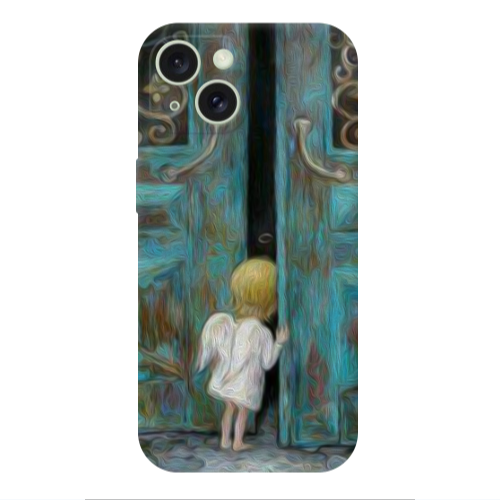 Apple iPhone 15 Plus Meraklı Melek Siyah Renkli Silikon Telefon Kılıfı