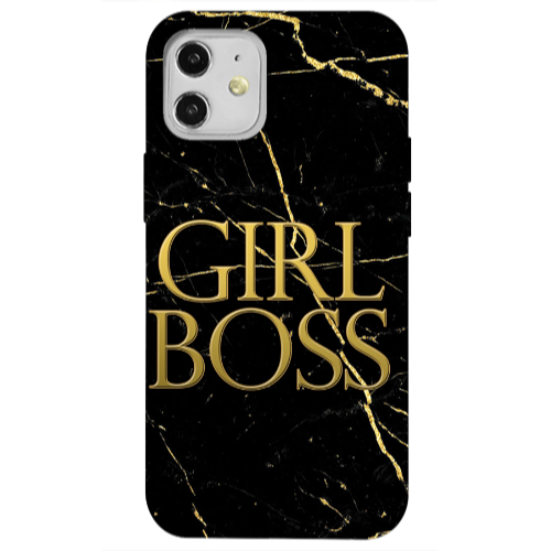 Apple iPhone 12 Mini Mermer Girl Boss Sarı Renkli Silikon Telefon Kılıfı