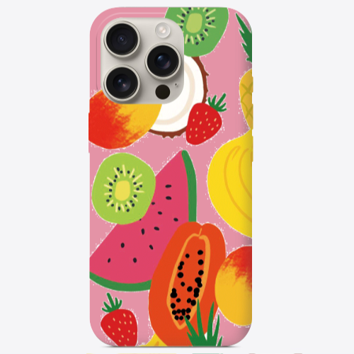 Apple iPhone 16 Pro Max Meyveler Pembe Renkli Silikon Telefon Kılıfı