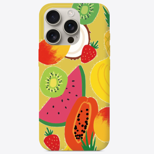 Apple iPhone 16 Pro Max Meyveler Sarı Renkli Silikon Telefon Kılıfı