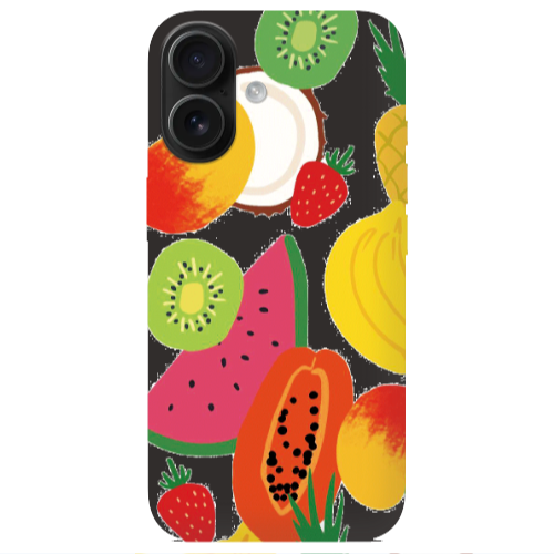 Apple iPhone 16 Meyveler Siyah Renkli Silikon Telefon Kılıfı