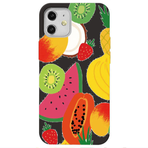 Apple iPhone 12 Mini Meyveler Siyah Renkli Silikon Telefon Kılıfı