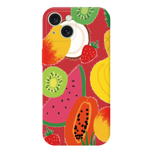 Apple iPhone 15 Meyveler Kırmızı Renkli Silikon Telefon Kılıfı
