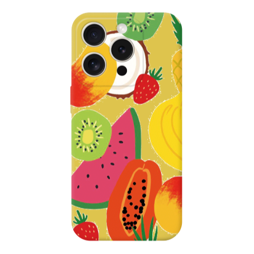 Apple iPhone 15 Pro Meyveler Sarı Renkli Silikon Telefon Kılıfı