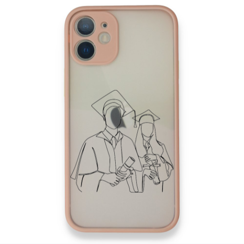 Apple iPhone 12 Mini Mezun Pembe Hux Telefon Kılıfı
