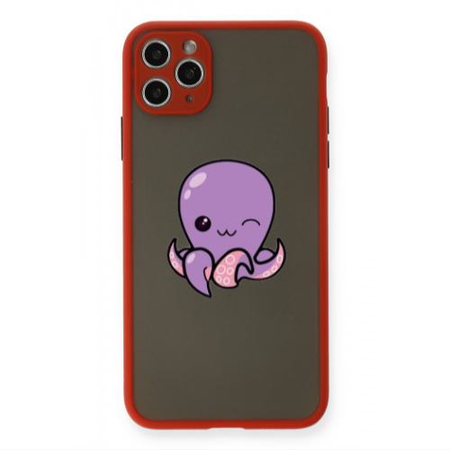 Apple iPhone 11 Pro Max Mor Ahtapot Kırmızı Hux Telefon Kılıfı