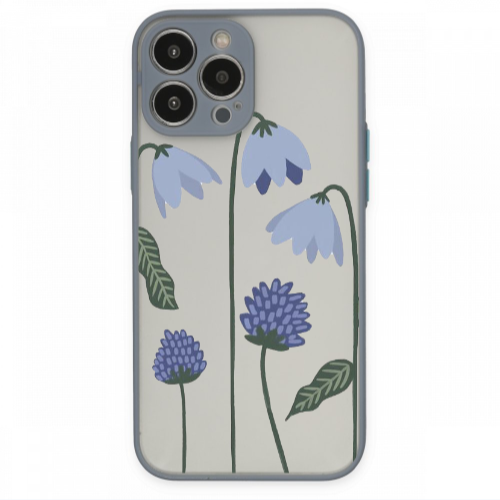 Apple iPhone 13 Pro Max Mor Çiçek 2 Gri Hux Telefon Kılıfı