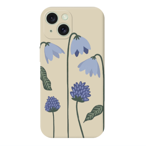 Apple iPhone 15 Mor Çiçek 2 Krem Renkli Silikon Telefon Kılıfı
