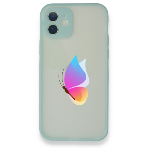 Apple iPhone 12 Mor Kelebek Turkuaz Hux Telefon Kılıfı