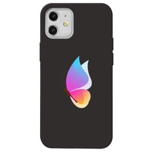 Apple iPhone 12 Mini Mor Kelebek Siyah Renkli Silikon Telefon Kılıfı