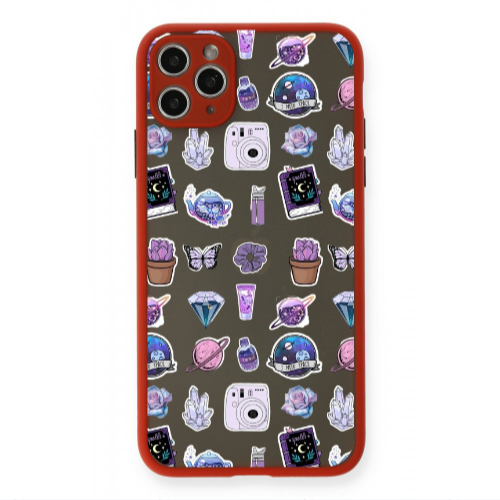 Apple iPhone 11 Pro Max Mor Nesneler Kırmızı Hux Telefon Kılıfı