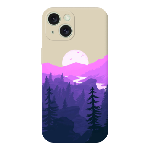Apple iPhone 15 Plus Mor Krem Renkli Silikon Telefon Kılıfı