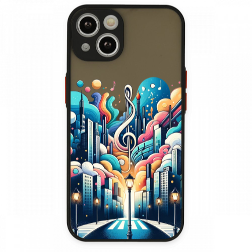Apple iPhone 13 Mini Müzik Sokağı Siyah Hux Telefon Kılıfı