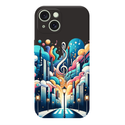 Apple iPhone 15 Müzik Sokağı Siyah Renkli Silikon Telefon Kılıfı