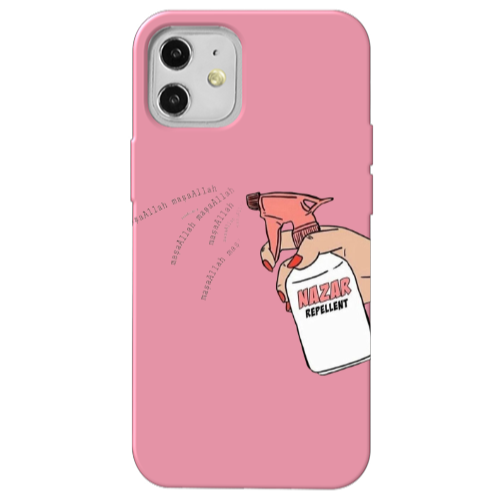 Apple iPhone 12 Nazar Spray Pembe Renkli Silikon Telefon Kılıfı