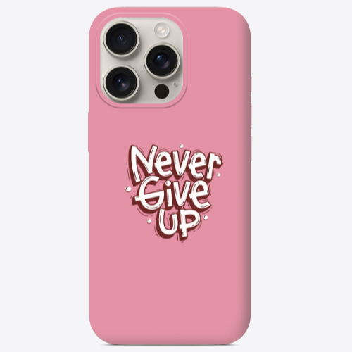 Apple iPhone 16 Pro Max Never Give Up Pembe Renkli Silikon Telefon Kılıfı