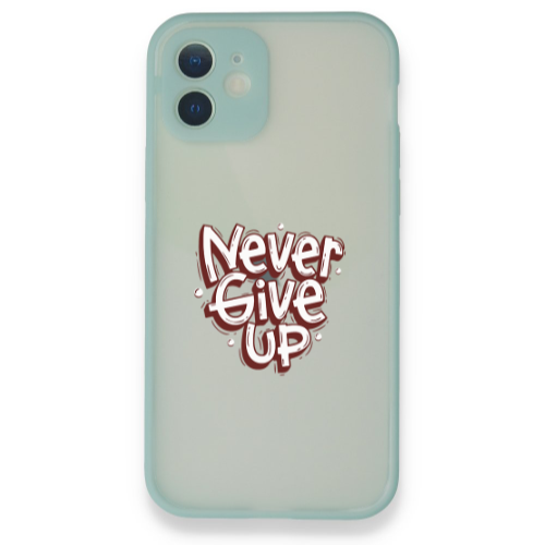 Apple iPhone 12 Never Give Up Turkuaz Hux Telefon Kılıfı