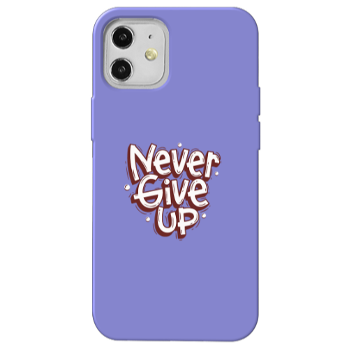 Apple iPhone 12 Mini Never Give Up Lila Renkli Silikon Telefon Kılıfı