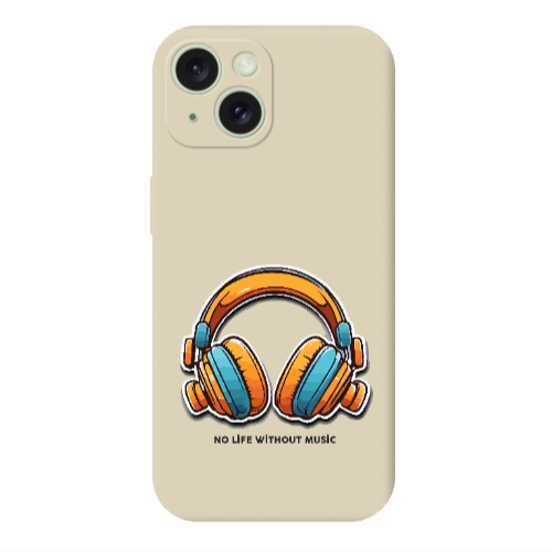 Apple iPhone 15 Plus no life without music Krem Renkli Silikon Telefon Kılıfı