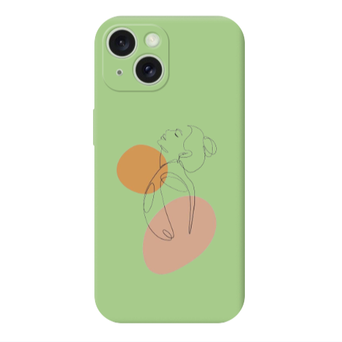 Apple iPhone 15 Özgür Kadın Açık Yeşil Renkli Silikon Telefon Kılıfı