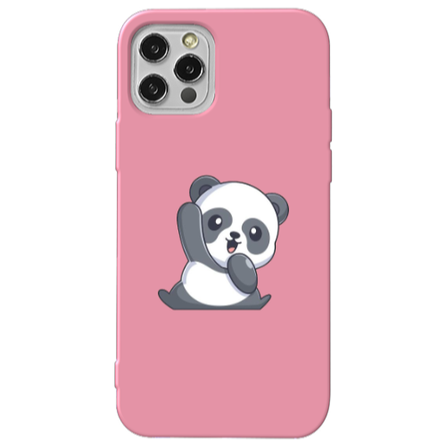 Apple iPhone 12 Pro Max Panda2 Pembe Renkli Silikon Telefon Kılıfı