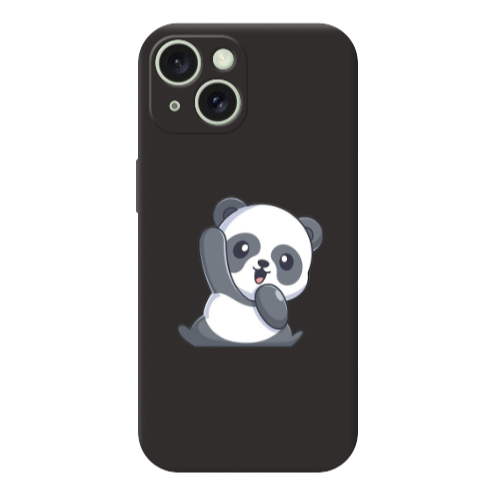Apple iPhone 15 Panda2 Siyah Renkli Silikon Telefon Kılıfı