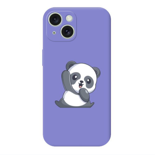 Apple iPhone 15 Plus Panda2 Lila Renkli Silikon Telefon Kılıfı