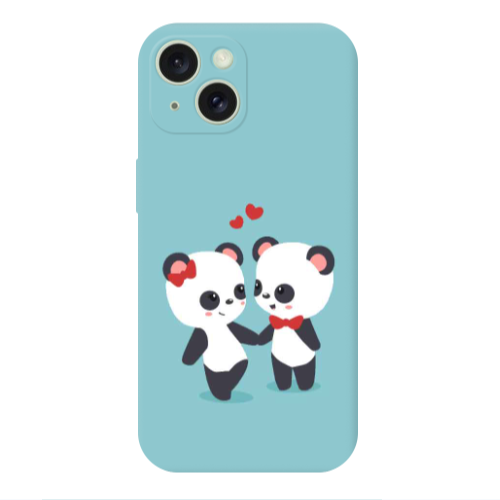 Apple iPhone 15 Plus Panda Lila Renkli Silikon Telefon Kılıfı
