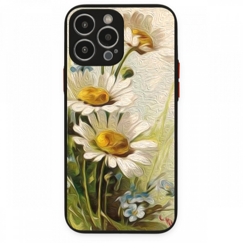 Apple iPhone 13 Pro Max Papatyalar Siyah Hux Telefon Kılıfı