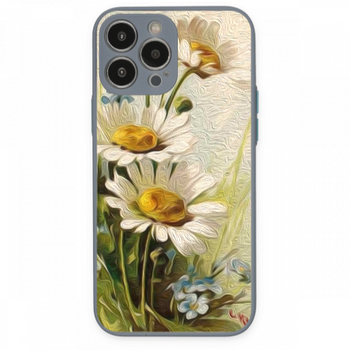 Apple iPhone 14 Pro Max Papatyalar Gri Hux Telefon Kılıfı