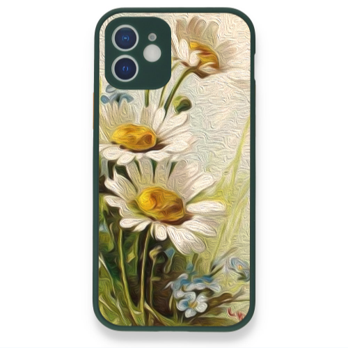 Apple iPhone 12 Mini Papatyalar Koyu Yeşil Hux Telefon Kılıfı