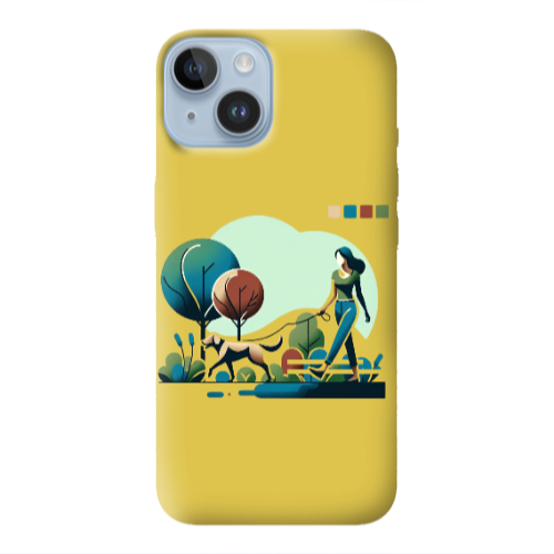 Apple iPhone 14 Parkta Yürüyüş Sarı Renkli Silikon Telefon Kılıfı