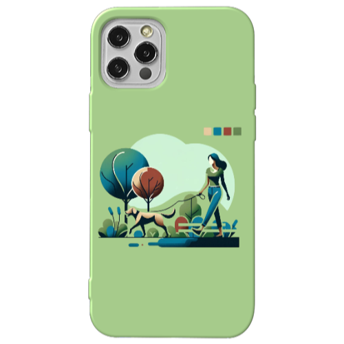 Apple iPhone 12 Pro Parkta Yürüyüş Açık Yeşil Renkli Silikon Telefon Kılıfı