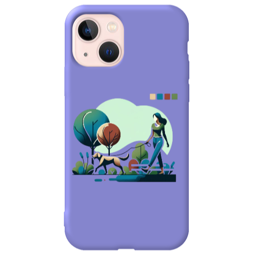 Apple iPhone 13 Mini Parkta Yürüyüş Lila Renkli Silikon Telefon Kılıfı