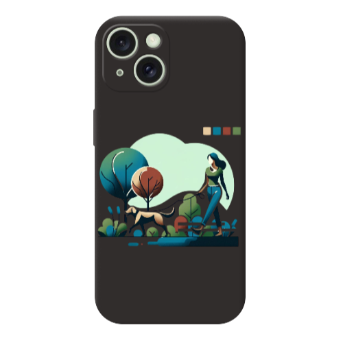 Apple iPhone 15 Parkta Yürüyüş Siyah Renkli Silikon Telefon Kılıfı