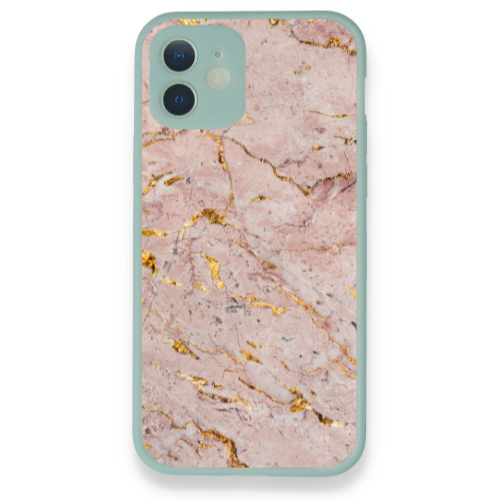 Apple iPhone 12 Pembe Altın Turkuaz Hux Telefon Kılıfı