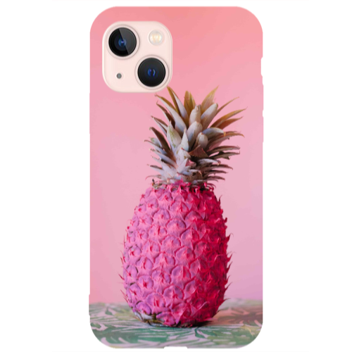 Apple iPhone 13 Pembe Ananas Sarı Renkli Silikon Telefon Kılıfı