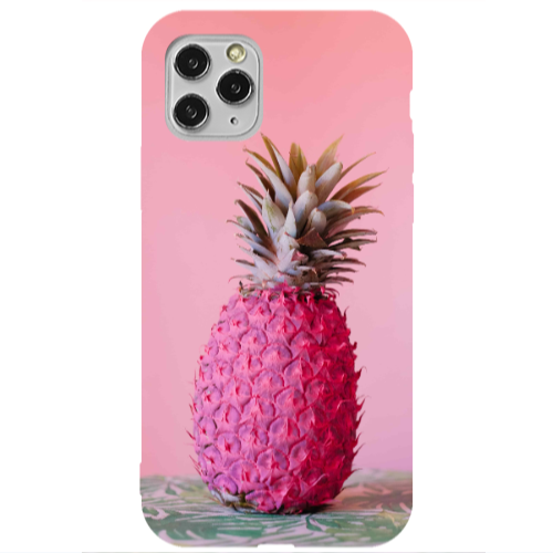 Apple iPhone 11 Pro Max Pembe Ananas Açık Yeşil Renkli Silikon Telefon Kılıfı