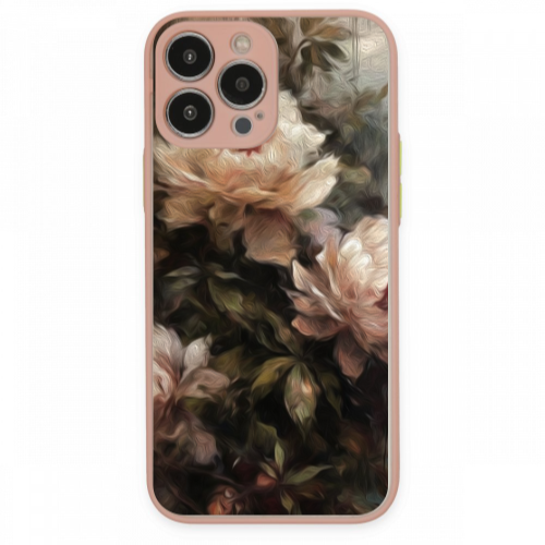 Apple iPhone 13 Pro Max Pembe Çiçek2 Pembe Hux Telefon Kılıfı