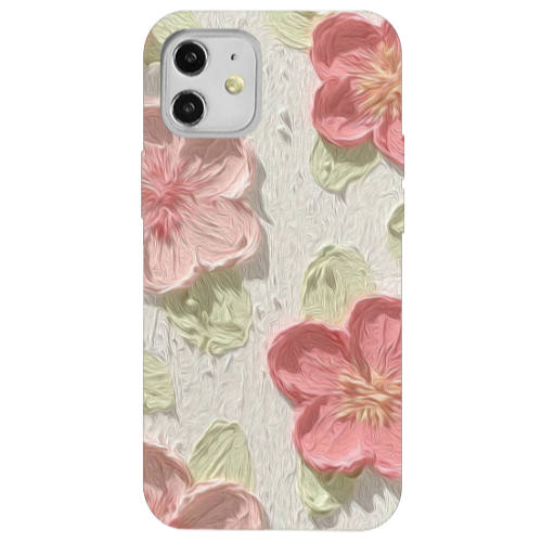 Apple iPhone 12 Pembe Çiçek Siyah Renkli Silikon Telefon Kılıfı
