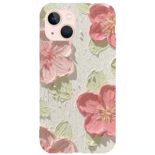Apple iPhone 13 Mini Pembe Çiçek Krem Renkli Silikon Telefon Kılıfı