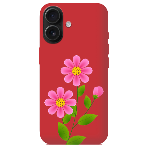 Apple iPhone 16 Pembe Çiçekler Kırmızı Renkli Silikon Telefon Kılıfı