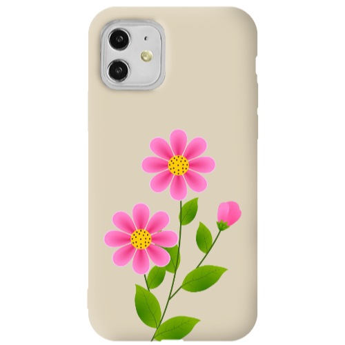 Apple iPhone 11 Pembe Çiçekler Krem Renkli Silikon Telefon Kılıfı