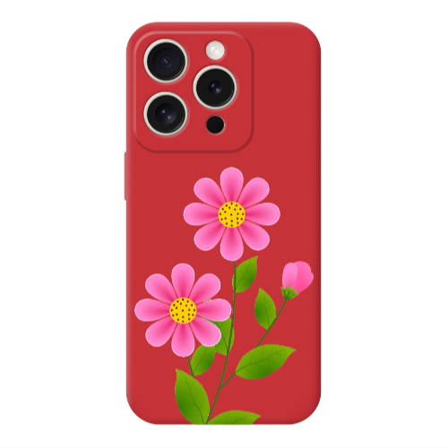 Apple iPhone 15 Pro Pembe Çiçekler Kırmızı Renkli Silikon Telefon Kılıfı