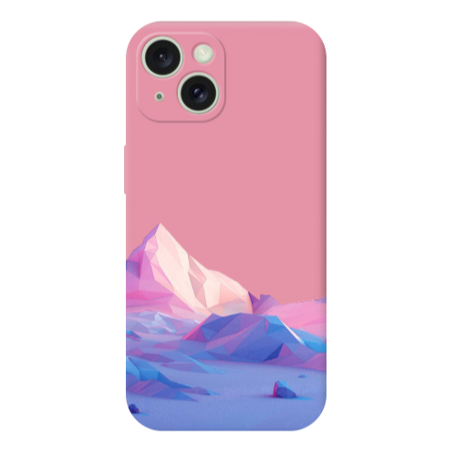 Apple iPhone 15 Pembe Dağ2 Pembe Renkli Silikon Telefon Kılıfı