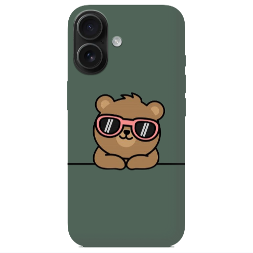 Apple iPhone 16 Pembe Gözlük Koyu Yeşil Renkli Silikon Telefon Kılıfı
