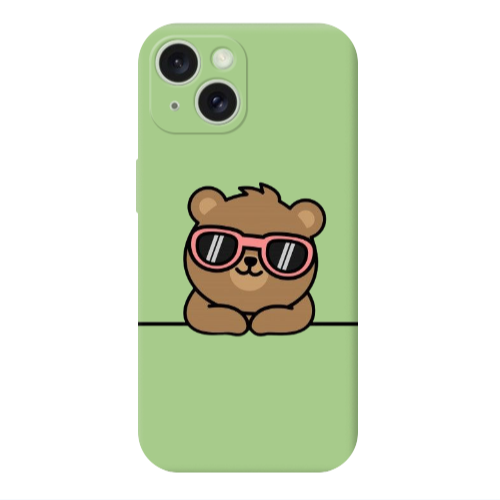 Apple iPhone 15 Pembe Gözlük Açık Yeşil Renkli Silikon Telefon Kılıfı
