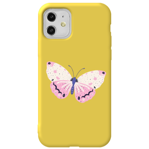 Apple iPhone 11 Pembe Kelebek Sarı Renkli Silikon Telefon Kılıfı